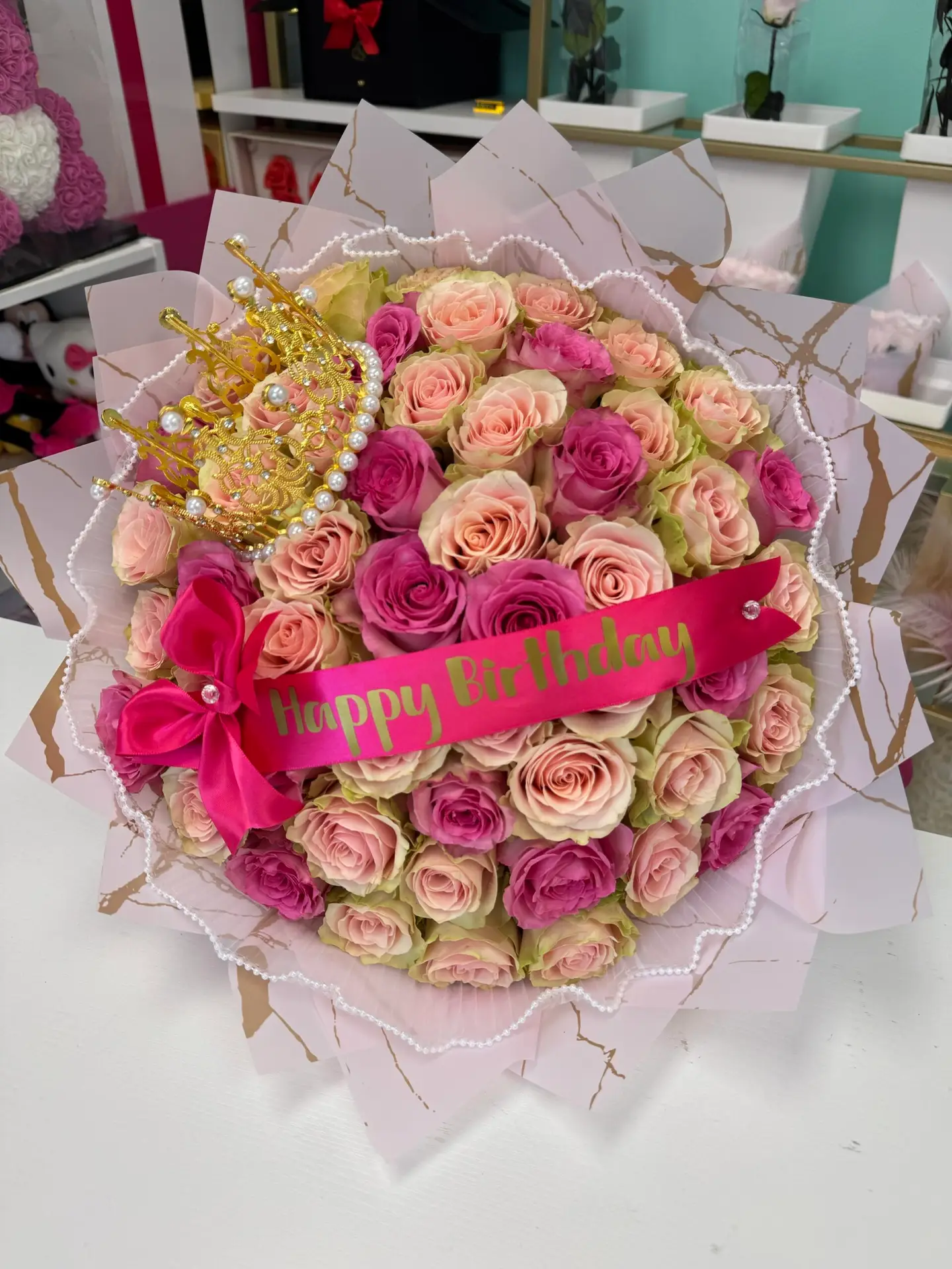 50 pink roses bouquet for HBD