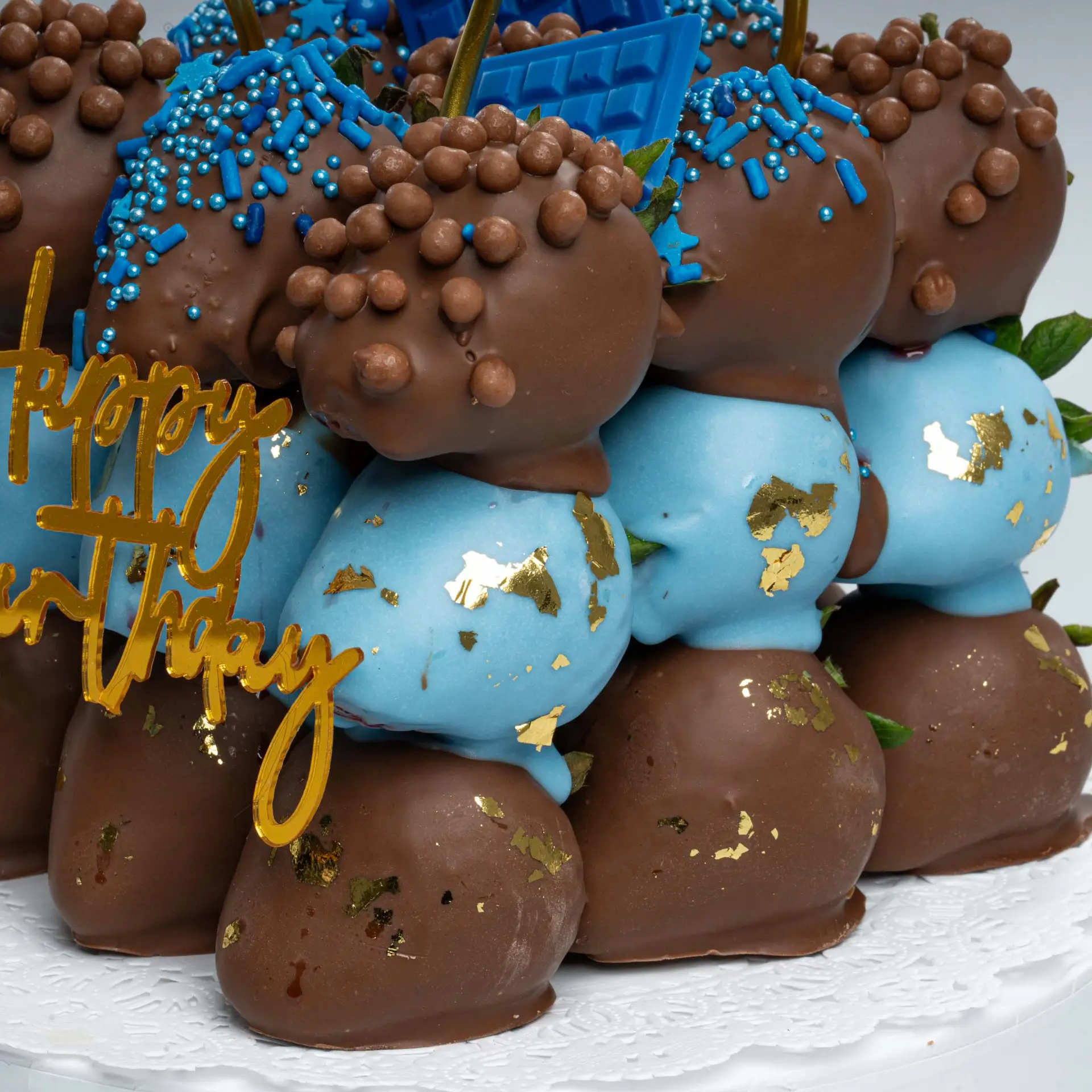 27 Chocolate covered Strawberries blue and brown ( milk Chocolate)
