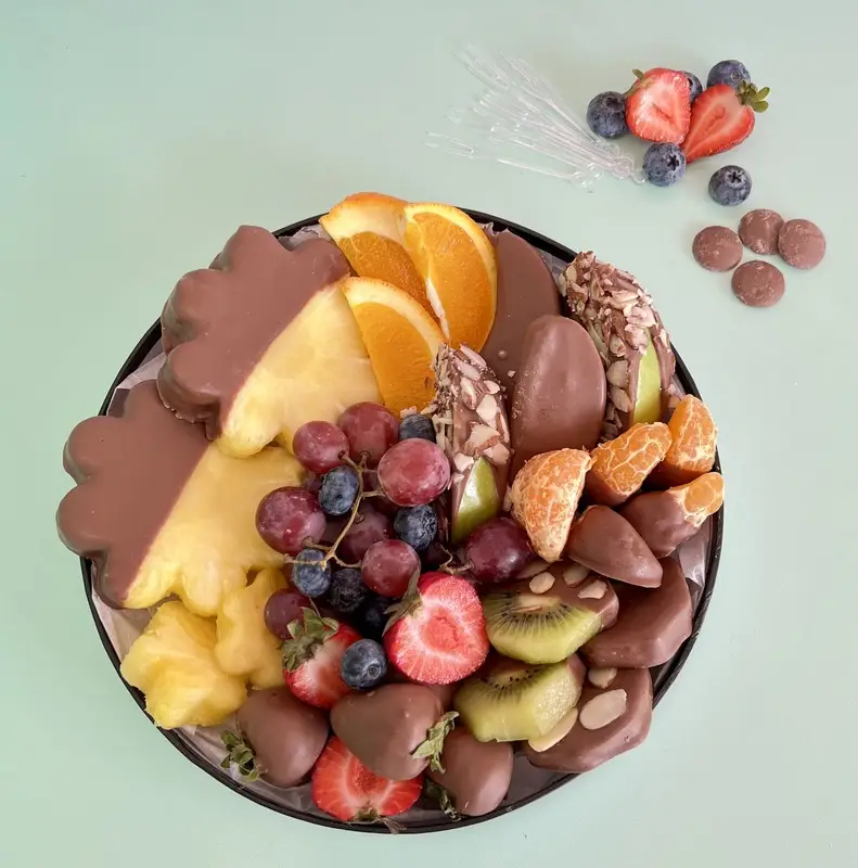 Chocolate covered Strawberries, Pineapples, kiwii.